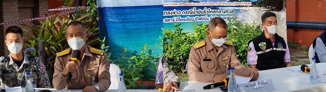 กองอำนวยการปฏิบัติการกู้คราบน้ำมันรั่วไหล หาดแม่รำพึง อ.เมือง จ.ระยอง ผู้สื่อข่าวรายงานว่า นายอนันต์ นาคนิยม รองผู้ว่าราชการจังหวัดระยอง พล.ร.ต.อภิชาต วรภมร รองโฆษกกองทัพเรือ และนายอรรถพล เจริญชันษา อธิบดีกรมควบคุมมลพิษ และนายแพทย์สุนทร เหรียญภูมิการกิจ นายแพทย์สาธารณสุขจังหวัดระยอง ร่วมแถลงข่าวความคืบหน้าการปฏิบัติการกู้คราบน้ำมันของ SPRC รั่วไหลกลางทะเล จังหวัดระยอง