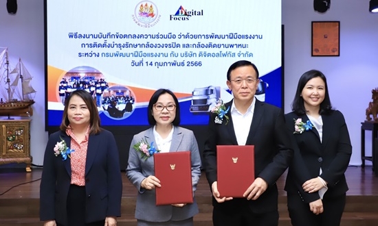 กระทรวงแรงงาน โดยกรมพัฒนาฝีมือแรงงาน จัดพิธีลงนามบันทึกข้อตกลงความร่วมมือว่าด้วยการพัฒนาฝีมือแรงงานการติดตั้งบำรุงรักษากล้องวงจรปิดและกล้องติดรถยนต์ ระหว่าง กรมพัฒนาฝีมือแรงงาน กับ บริษัท ดิจิตอลโฟกัส จำกัด เตรียมความพร้อมแรงงานสู่ช่างมืออาชีพ หนุนอาชีพอิสระ สร้างความเชื่อมั่นผู้บริโภค โดยนางสาวบุปผา เรืองสุด รองปลัดกระทรวงแรงงาน รักษาราชการแทนอธิบดีกรมพัฒนาฝีมือแรงงาน มอบหมายให้นางสาวไพลิน จินดามณีพร รองอธิบดีกรมพัฒนาฝีมือแรงงาน ร่วมลงนามความร่วมมือในครั้งนี้ ณ ห้องประชุมสัมมนา ชั้น 7 อาคาร Smart Building บริษัท ดิจิตอลโฟกัส จำกัด เขตบางกะปิ กรุงเทพฯ