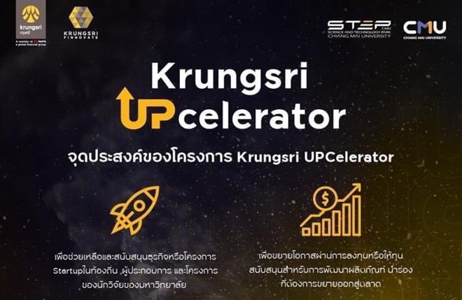 - จับมืออุทยานวิทยาศาสตร์และเทคโนโลยี มหาวิทยาลัยเชียงใหม่ (STeP) เปิดตัวโปรแกรม Krungsri UPcelerator เพื่อซัปพอร์ตสตาร์ทอัพภาคเหนือ