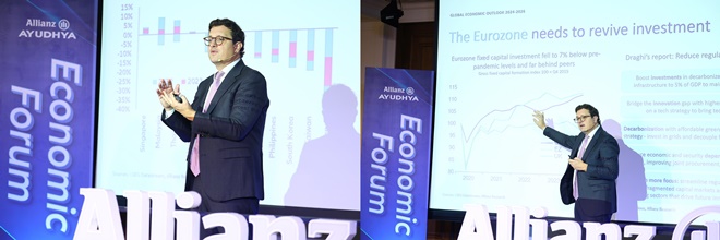 นายลูโดวิค เซอร์บราน หัวหน้านักเศรษฐศาสตร์ ของกลุ่มอลิอันซ์ กล่าวว่า “แนวโน้มเศรษฐกิจที่อลิอันซ์คาดการณ์สะท้อนถึงการมองโลกในแง่ดีอย่างระมัดระวังของเราท่ามกลางความท้าทายทั้งในระดับโลกและระดับภูมิภาค แม้ว่าการเติบโตคาดว่าจะคงที่ในอีกไม่กี่ปีข้างหน้า เรายังคงต้องเฝ้าระวังต่อไป ความตึงเครียดทางภูมิรัฐศาสตร์ วินัยทางการเงิน และความเหลื่อมล้ำระหว่างคนรวยและคนจนที่ยังคงมีอยู่ จะยังคงเป็นปัญหาสำคัญที่เราต้องแก้ไขเพื่อให้มั่นใจว่าเศรษฐกิจจะฟื้นตัวอย่างยั่งยืนและเข้มแข็งในระยะยาว”