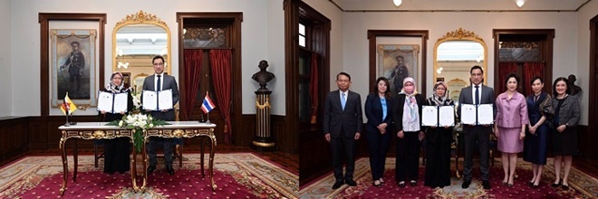 Ms. Rokiah Badar Managing Director ธนาคารกลางบรูไน (Brunei Darussalam Central Bank) และนายเศรษฐพุฒิ สุทธิวาทนฤพุฒิ ผู้ว่าการธนาคารแห่งประเทศไทย ร่วมลงนามในบันทึกความเข้าใจว่าด้วยความร่วมมือระหว่างธนาคารกลางบรูไน และธนาคารแห่งประเทศไทย