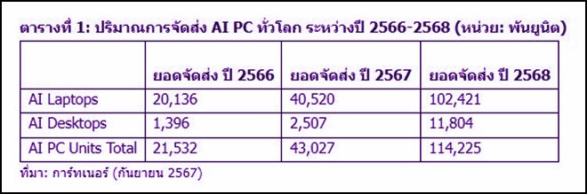 ตารางที่ 1: ปริมาณการจัดส่ง AI PC ทั่วโลก ระหว่างปี 2566-2568 (หน่วย: พันยูนิต)