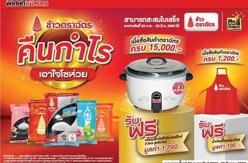 โดยผนึกกำลังร่วมกับห้างแม็คโคร จัดมหกรรม “ฉัตรแฟร์ คืนกำไร เอาใจโชห่วย” ชวนทุกคนซื้อสินค้าตราฉัตรทุกรายการ เมื่อซื้อครบ 15,000 บาท รับฟรี หม้อหุงข้าวไฟฟ้าอิมาร์เฟล็กซ์ ขนาด 5 ลิตร รุ่น RC342 จำนวน 1 ใบ (มูลค่า 1,790 บาท) และซื้อครบ 1,200 บาท รับฟรีผ้ากันเปื้อนตราฉัตร จำนวน 1 ผืน (มูลค่า 100 บาท) ตั้งแต่วันนี้-22 มีนาคม 2565 ที่ห้างแม็คโครสาขาที่ร่วมรายการ อาทิ สาขาลาดพร้าว, สาขาแจ้งวัฒนะ, สาขาศรีนครินทร์, สาขาบางบอน, สาขารังสิต, สาขาจรัญสนิทวงศ์, สาขาสาทร, สาขาบางพลี, สาขานครอินทร์ และสาขาปทุมธานี เท่านั้น