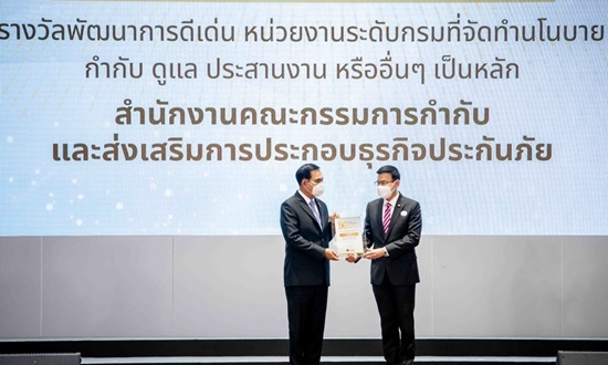 ดร.สุทธิพล ทวีชัยการ เลขาธิการคณะกรรมการกำกับและส่งเสริมการประกอบธุรกิจประกันภัย (เลขาธิการ คปภ.) เปิดเผยว่า วันนี้ (วันที่ 3 ธันวาคม 2564) นายกรัฐมนตรี (พลเอกประยุทธ์ จันทร์โอชา) ได้มอบรางวัลรัฐบาลดิจิทัลระดับกรม “รางวัลพัฒนาการดีเด่นหน่วยงานระดับกรมที่จัดทำนโยบาย กำกับ ดูแล ประสานงาน หรืออื่น ๆ เป็นหลัก” ให้แก่สำนักงานคณะกรรมการกำกับและส่งเสริมการประกอบธุรกิจประกันภัย (สำนักงาน คปภ.) ภายในงานมอบรางวัลรัฐบาลดิจิทัล ประจำปี 2564 "Digital Government Awards 2021" ณ ห้องมัฆวานรังสรรค์ ชั้น 3 สโมสรทหารบก วิภาวดี ซึ่งเป็นรางวัลที่สำนักงานพัฒนารัฐบาลดิจิทัล (องค์การมหาชน) หรือ (สพร.) พิจารณามอบให้กับส่วนราชการและหน่วยงานภาครัฐ โดยใช้ผลคะแนนจากโครงการสำรวจระดับ ความพร้อมการพัฒนารัฐบาลดิจิทัลของหน่วยงานภาครัฐ เพื่อเป็นต้นแบบที่ดีให้กับส่วนราชการและหน่วยงานภาครัฐอื่น ๆ ต่อไป โดยการมอบรางวัลในครั้งนี้ จัดโดย สพร. เป็นการมอบรางวัลให้แก่หน่วยงานภาครัฐที่มีการปรับเปลี่ยนองค์กรสู่การเป็นรัฐบาลดิจิทัลในระดับสูง และมีผลงานดีเด่นด้านการให้บริการประชาชนผ่านระบบดิจิทัล