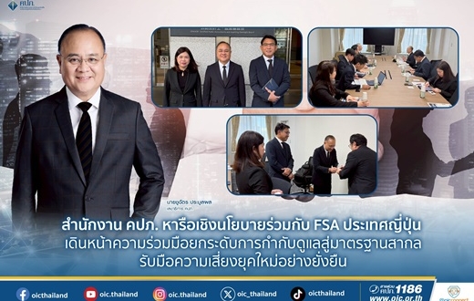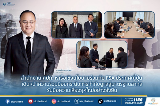 ในโอกาสนี้ เลขาธิการ คปภ. ได้กล่าวถึงความร่วมมืออย่างใกล้ชิดและต่อเนื่องระหว่างสำนักงาน คปภ. และ FSA โดยย้ำว่า FSA ถือเป็นพันธมิตรเชิงยุทธศาสตร์ (Strategic Partner) ที่สำคัญในการพัฒนามาตรฐานการกำกับดูแลธุรกิจประกันภัยของไทย ทั้งในระดับทวิภาคีและเวทีระหว่างประเทศ ทั้งนี้ การหารือครั้งนี้ถือเป็นการสานต่อความร่วมมือจากการประชุมก่อนหน้าในประเด็นสำคัญ ได้แก่ การกำกับดูแลกลุ่มธุรกิจประกันภัย (Group-wide Supervision : GWS) และการพัฒนากรอบการกำกับดูแลความเสี่ยงจากภัยพิบัติขนาดใหญ่ (Catastrophe Risk) เพื่อเสริมสร้างความมั่นคงของระบบประกันภัยและยกระดับมาตรฐานการกำกับดูแลให้สอดคล้องกับแนวปฏิบัติสากล โดยที่ประชุมได้หารือเชิงลึกเกี่ยวกับความคืบหน้าการบังคับใช้เกณฑ์ความมั่นคงทางการเงินตามมูลค่าทางเศรษฐศาสตร์ (Economic Value-based Solvency Regime : ESR) ของญี่ปุ่น ซึ่งมีกำหนดบังคับใช้ในปี 2569 และถือเป็น การเปลี่ยนผ่านเชิงโครงสร้างของระบบกำกับดูแลไปสู่การประเมินฐานะการเงินของบริษัทประกันภัยตามมูลค่าทางเศรษฐศาสตร์อย่างแท้จริง โดย FSA ได้แบ่งปันประสบการณ์ด้านการกำกับดูแลผ่านกระบวนการ Supervisory Dialogue การทดสอบภาคสนาม (Field Testing) และการบูรณาการกรอบ ESR เข้ากับกระบวนการบริหารความเสี่ยงขององค์กร (Own Risk and Solvency Assessment : ORSA) ขณะที่สำนักงาน คปภ. ได้แลกเปลี่ยนแนวทางการพัฒนาเกณฑ์เงินกองทุนตามความเสี่ยงของประเทศไทย รวมถึงการบริหารความคาดหวังของตลาดในช่วงเปลี่ยนผ่าน เพื่อรักษาเสถียรภาพของระบบประกันภัยโดยรวม