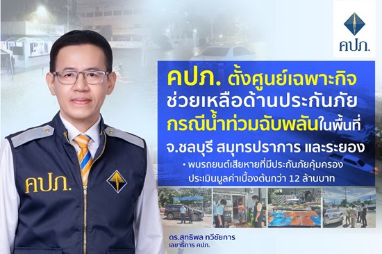 ดร. สุทธิพล ทวีชัยการ เลขาธิการคณะกรรมการกำกับและส่งเสริมการประกอบธุรกิจประกันภัย (เลขาธิการ คปภ.) เปิดเผยว่า จากกรณีที่มีฝนตกหนักในหลายจังหวัดทางภาคตะวันออกของประเทศไทยและเกิดน้ำท่วมฉับพลัน จนสร้างความเสียหายต่อทรัพย์สิน บ้านเรือน และรถยนต์ ของประชาชนเป็นจำนวนมากในพื้นที่จังหวัดสมุทรปราการ ชลบุรี และระยอง เหตุเกิดเมื่อวันที่ 28 สิงหาคม 2564 ในเบื้องต้น ได้สั่งการให้สายคุ้มครองสิทธิประโยชน์ บูรณาการร่วมกับสายส่งเสริมและประกันภัยภูมิภาค สำนักงาน คปภ. ภาค 6 (ชลบุรี) และสำนักงาน คปภ. จังหวัดชลบุรี สำนักงาน คปภ. จังหวัดสมุทรปราการ และสำนักงาน คปภ. จังหวัดระยอง เร่งให้ความช่วยเหลือด้านประกันภัยและสำรวจความเสียหายอย่างเร่งด่วนผ่าน Platform การรายงานข้อมูลกรณีอุบัติภัยกลุ่มหรือรายใหญ่ด้วยระบบอิเล็กทรอนิกส์ และลงพื้นที่เพื่ออำนวยความสะดวกด้านประกันภัยให้กับผู้ได้รับความเสียหาย รวมทั้งติดตามและตรวจสอบข้อมูลด้วยว่าบ้านเรือน รถยนต์ และทรัพย์สินอื่น ๆ ที่ได้รับความเสียหายจากเหตุน้ำท่วมในครั้งนี้ มีการทำประกันภัยรองรับไว้ หรือไม่