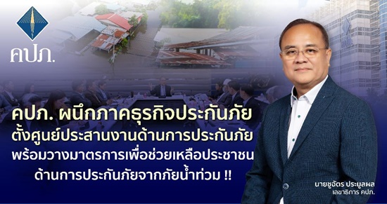 คปภ. ผนึกภาคธุรกิจประกันภัย ตั้งศูนย์ประสานงานด้านการประกันภัย พร้อมวางมาตรการเพื่อช่วยเหลือประชาชนด้านการประกันภัยจากภัยน้ำท่วม !!