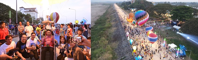 โดยบรรยากาศในงานเป็นไปอย่างคึกคัก มีประชาชน นักท่องเที่ยว มาเที่ยวชม แห่เซลฟี่ ตื่นตาตื่นใจ นอกจากนี้ยังได้ ชื่นชมความสวยงาม ของเส้นทางถนนสวรรค์ชายโขง ถือเป็นเส้นทางท่องเที่ยวเลียบแม่น้ำโขง ระยะทางยาวเกือบ 5 กิโลเมตร ที่เดียวในไทย ถือเป็นเส้นทางท่องเที่ยวสายสุขภาพ รองรับการเดินวิ่ง ออกกำลังกาย ปั่นจักรยานเพื่อสุขภาพ มีนายวันชัย จันทร์พร ผวจ.นครพนม นำข้าราชการ เจ้าหน้าที่เกี่ยวข้อง ร่วมกิจกรรม