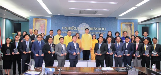 นางสาวบุปผา เรืองสุด รองปลัดกระทรวงแรงงาน รักษาราชการแทนอธิบดีกรมพัฒนาฝีมือแรงงาน กล่าวว่า ในวันนี้ได้เชิญนายบุญชอบ สุทธมนัสวงษ์ ปลัดกระทรวงแรงงาน เป็นประธานมอบโล่ประกาศเกียรติคุณให้แก่เครือข่ายพัฒนาฝีมือแรงงาน จำนวน 27 แห่ง ประกอบด้วย 1. กรมโรงงานอุตสาหกรรม 2. การไฟฟ้าส่วนภูมิภาค 3. มหาวิทยาลัยราชภัฏสวนสุนันทา 4. สำนักงานคณะกรรมการกิจการกระจายเสียง กิจการโทรทัศน์ และกิจการโทรคมนาคมแห่งชาติ 5. สมาคมช่างเหมาไฟฟ้าและเครื่องกลไทย 6. มูลนิธิพัฒนาฝีมือแรงงาน 7. บริษัท กลุ่มเซ็นทรัล จำกัด 8. บริษัท จระเข้ คอร์ปอเรชั่น จำกัด 9. บริษัท ซีเมนส์ จำกัด 10. บริษัท แซง-โกแบ็ง เวเบอร์ จำกัด 11. บริษัท ดิจิตอลโฟกัส จํากัด 12. บริษัท ดูโฮม จำกัด (มหาชน) 13. บริษัท โตโยต้า มอเตอร์ ประเทศไทย จำกัด 14. บริษัท ไทย ทาซากิ เอ็นจิเนียริ่ง จำกัด 15. บริษัท ไทยซัมซุง อิเลคโทรนิคส์ จำกัด 16. บริษัท ไทยยามาฮ่ามอเตอร์ จำกัด 17. บริษัท นิปปอนเพนต์ (ประเทศไทย) จำกัด 18. บริษัท เน็กซเตอร์ ดิจิตอล แอนด์ โซลูชั่น จำกัด 19. บริษัท ปูนซิเมนต์ไทย (ลำปาง) จำกัด 20. บริษัท ปูนซีเมนต์นครหลวง จำกัด (มหาชน) 21. บริษัท มาเวล คอร์ปอเรชั่น จำกัด 22. บริษัท สยามอุตสาหกรรมยิปซัม (สระบุรี) จำกัด 23. บริษัท อีมิแน้นท์แอร์ (ประเทศไทย) จำกัด 24. บริษัท เอ็นเอส บลูสโคป (ประเทศไทย) จำกัด 25. บริษัท เอสซีจี เซรามิกส์ จำกัด (มหาชน) 26. บริษัท แอโร กรุ๊ป (1992) จำกัด 27. บริษัท โฮม โปรดักส์ เซ็นเตอร์ จำกัด (มหาชน)