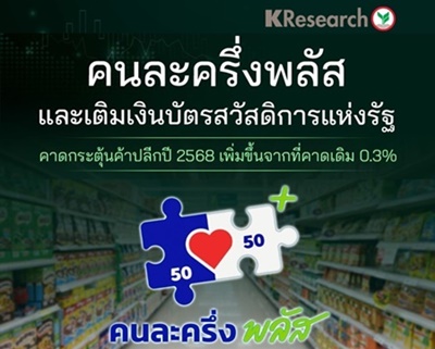 หนึ่งในนโยบายเศรษฐกิจระยะสั้น (Quick Big Win) อย่างมาตรการคนละครึ่งพลัส & เติมเงินบัตรสวัสดิการแห่งรัฐ ที่เบื้องต้นมีวงเงินราว 66,000 ล้านบาท (การให้เงินประชาชนที่อยู่ในฐานระบบภาษี 9 ล้านคน นอกระบบภาษี 11 ล้านคน และการเติมเงินบัตรสวัสดิการแห่งรัฐ 13 ล้านคน) ซึ่งจะใช้ได้ในช่วงวันที่ 29 ต.ค. – 31 ธ.ค. 2568 น่าจะช่วยบรรเทาค่าครองชีพของผู้บริโภค และกระตุ้นการใช้จ่ายของธุรกิจค้าปลีกเอสเอ็มอีได้บ้าง