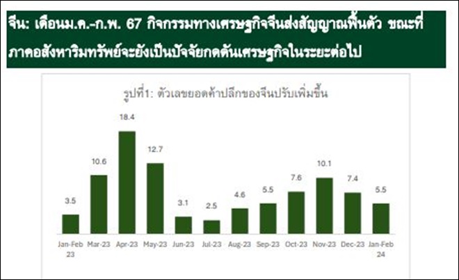 จีน: เดือนม.ค.-ก.พ. 67 กิจกรรมทางเศรษฐกิจ