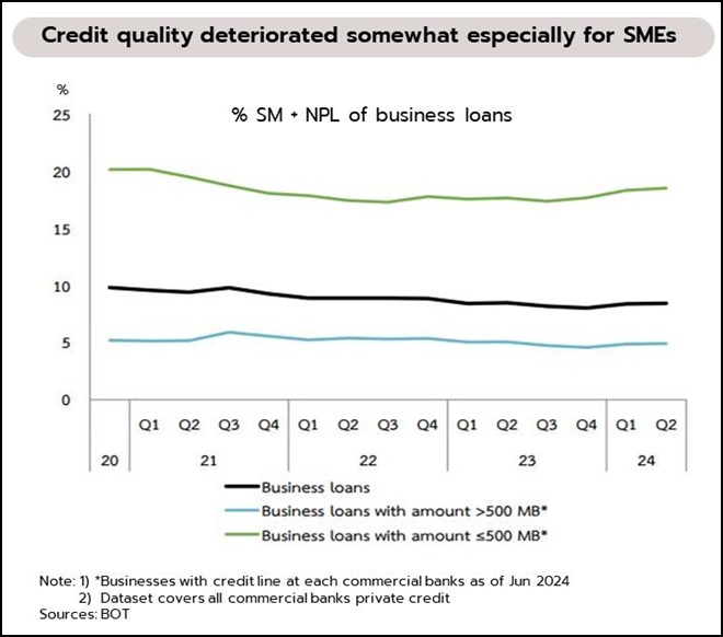 อย่างไรก็ตาม ยังต้องติดตามประเด็นที่กนง.แสดงความกังวลไว้เกี่ยวกับ 1) ภาวะการเงินที่ตึงตัวขึ้น ผลกระทบของคุณภาพสินเชื่อที่ด้อยลงต่อภาวะเศรษฐกิจและการเงิน โดยเฉพาะกลุ่มเปราะบางและกลุ่มธุรกิจที่ยังฟื้นตัวไม่ชัดเจน ทำให้หนี้ด้อยคุณภาพมีแนวโน้มเพิ่มขึ้นในระยะต่อไปและอาจส่งผลกระทบต่อเศรษฐกิจจริง และ 2) การลงทุนภาคเอกชนและการลงทุนภาครัฐหากยังคงซบเซาต่อเนื่อง ประเด็นเหล่านี้อาจส่งผลให้กนง.อาจมีการทบทวนการดำเนินนโยบายทางการเงินในระยะข้างหน้าได้