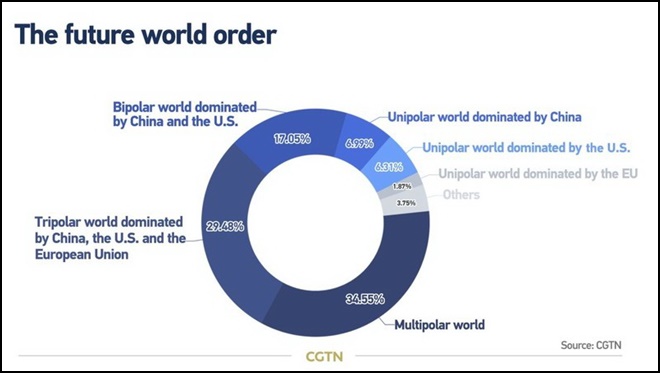 มีผู้ตอบแบบสำรวจเพียง 6.31% ที่เชื่อว่าโลกจะเป็นขั้วเดียวในอนาคตและถูกครอบงำโดยสหรัฐอเมริกา ขณะที่ 34.55% ซึ่งเป็นกลุ่มใหญ่ที่สุด คิดว่าโลกแบบหลายขั้วมีแนวโน้มเกิดขึ้นมากที่สุด
