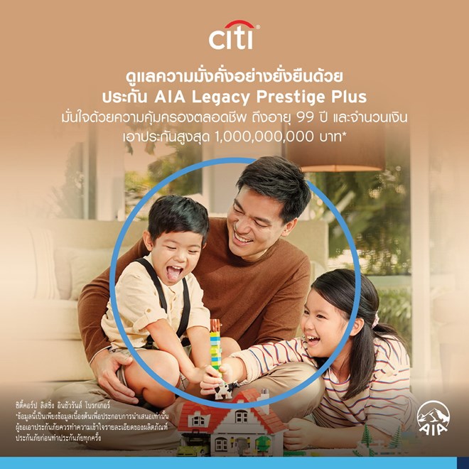 บริษัท ซิตี้คอร์ป ลิสซิ่ง (ประเทศไทย) จำกัด หนึ่งในกลุ่มบริษัทของซิตี้ ประเทศไทย ร่วมกับเอไอเอ ประเทศไทย นำเสนออีกทางเลือกในการวางแผนการเงินเพื่อต่อยอดความมั่นคงของชีวิตพร้อมรับทุกสถานการณ์ เช่น การซื้อผลิตภัณฑ์ประกันชีวิตสำหรับลูกค้าสินทรัพย์สูง AIA Legacy Prestige Plus ควบคู่กับ “เอไอเอ อินฟินิท แคร์” (AIA Infinite Care) ซึ่งเป็นสัญญาเพิ่มเติมสำหรับผลิตภัณฑ์ประกันคุ้มครองสุขภาพที่จะมาช่วยคลายความกังวลในด้านภาระค่ารักษาพยาบาลหากเกิดการเจ็บป่วย โดยครอบคลุมครบทุกกระบวนการของการรักษา ตั้งแต่การป้องกัน การตรวจเช็ค การวินิจฉัยโรค การบำบัดรักษา และการฟื้นฟูสุขภาพ รวมถึงผลประโยชน์ค่ารักษาพยาบาล ทั้งผู้ป่วยใน ผู้ป่วยนอก และกรณีฉุกเฉินอย่างครอบคลุม