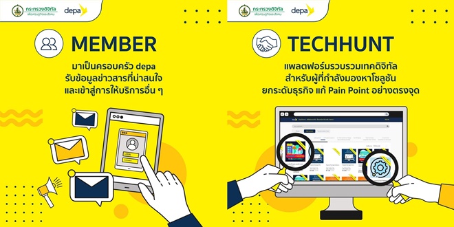 ดีป้า พลิกโฉมการให้บริการดิจิทัลสู่ Inclusive Innovation ผ่าน TECHHUNT แพลตฟอร์มรวบรวมเทคโนโลยีดิจิทัลจากดิจิทัลสตาร์ทอัพและผู้ให้บริการดิจิทัลสัญชาติไทย จัดเต็ม 500 รายการ เพื่อส่งมอบบริการตอบโจทย์ผู้ที่กำลังมองหาดิจิทัลโซลูชันที่เหมาะสมกับตนเอง ก่อนนำมาประยุกต์ใช้แก้ไขปัญหาและพัฒนาประสิทธิภาพการดำเนินธุรกิจ พบกันวันนี้บน LINE Official Account: depaThailand