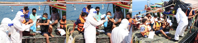 สำหรับลาดตระเวนในครั้งนี้ ได้มอบหน้ากากอนามัย แอลกอฮอล์สำหรับล้างมือ ให้กับลูกเรือประมง เพื่อใช้ป้องกันตนเองในขณะปฏิบัติงานร่วมกันในเรืออีกด้วย เน้นย้ำกับไต๋เรือประมงให้กำกับดูแลลูกเรือในการสวมหน้ากากอนามัยและหมั่นล้างมือเป็นประจำ การ์ดห้ามตก ต้องประกอบอาชีพภายใต้มาตรการการป้องกันการแพร่ระบาดของไวรัสโคโรนา 2019 (COVID 19)