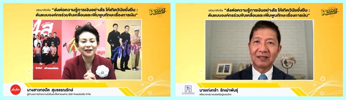 ทางด้าน นางสาวทอปัด สุบรรณรักษ์ ผู้อำนวยการฝ่ายความยั่งยืนและสื่อสารองค์กร บริษัท ไทยแอร์เอเชีย จำกัด กล่าวว่า ที่ผ่านมาไทยแอร์เอเชียได้มีการสร้างภูมิคุ้มกันทางการเงิน โดยมีการอบรมพนักงานให้มีวินัยทางการเงิน  เรียกได้ว่าเป็นการให้วัคซีนแก่พนักงาน เพื่อเตรียมพร้อมรับมือกับความผันผวนต่าง ๆ ที่อาจเกิดขึ้นได้