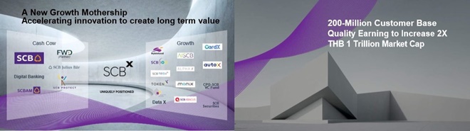 ย้อนกลับไปเมื่อ 5 – 6 ปีก่อน ธนาคารไทยพาณิชย์ เริ่มกลยุทธ์ “ตีลังกา” จากมองเห็นการเปลี่ยนแปลงที่มีดิจิทัลเทคโนโลยีเป็นตัวขับเคลื่อน เกิดเป็นกระแส Digital Disruption ที่หลายบริษัทชั้นนำทั่วโลกต่างตระหนักและเร่งปรับตัวให้ทันเพื่อพาองค์กรให้อยู่รอด รวมถึงธุรกิจธนาคารที่ต้องเปลี่ยนแปลงขนานใหญ่ เพื่อต่อกรกับผู้เล่นหน้าใหม่จากบริษัท Tech Company ทั้งในประเทศและต่างชาติ เพื่อรองรับพฤติกรรมผู้บริโภคที่เปลี่ยนไป จนมาสู่ยุทธศาสตร์ “ยานแม่” ด้วยการจัดตั้ง “SCBX” เพื่อนำบริษัทในกลุ่มไทยพาณิชย์ ซึ่งประกอบไปด้วย ธนาคาร ไทยพาณิชย์ และบริษัทต่าง ๆ ให้มุ่งเน้นธุรกิจที่มีการเติบโตสูง และตอบรับโลกแห่งอนาคต มุ่งสู่การเป็นกลุ่มบริษัทเทคโนโลยีการเงินระดับภูมิภาคและระดับโลก โดยมีเป้าหมายสู่การเป็นบริษัทที่มีมูลค่าเกิน 1 ล้านล้านบาท และฐานลูกค้ากว่า 200 ล้านคน