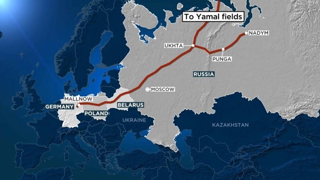 ซึ่งส่วนใหญ่แล้วรัสเซียจะส่งก๊าซธรรมชาติมายังยุโรปโดยทางท่อส่งก๊าซยูเรนกอย – อูจโกรอด (Уренгой — Помары — Ужгород :  Urengoy–Pomary–Uzhhorod pipeline) เป็นส่วนหนึ่งของเครือข่ายท่อส่งก๊าซของยูเครน สามารถส่งก๊าซได้ปีละกว่า 100,000 ล้านลูกบาศก์เมตรแต่ภายหลังจากที่รัสเซียผนวกไครเมียของยูเครนและเกิดเหตุความไม่สงบจากกลุ่มผู้สนับสนุนรัสเซียทางตะวันออกของยูเครน รัสเซียจึงลดปริมาณการส่งก๊าซจากยูเครนไปยังยุโรปผ่านท่อส่งก๊าซส้นทางนี้เหลือ 53 ล้านลูกบาศก์เมตรต่อวัน อีกเส้นทางหนึ่งที่มีความสำคัญคือท่อส่งก๊าซยามาล – ยุโรป (Ямал — Европа: Yamal–Europe pipeline) ส่งก๊าซได้ปีละ 33,000 ล้านลูกบาศก์เมตร คิดเป็นร้อยละ 15 ของความต้องการก๊าซธรรมชาติของยุโรปที่มาจากรัสเซีย โดยรัสเซียได้ยุติการส่งก๊าซจากรัสเซียตะวันตกไปยังเยอรมนี ผ่านทางท่อส่งยามาล-ยุโรป ไปแล้วอย่างไม่มีกำหนดตั้งแต่วันพฤหัสบดีที่ 3 มีนาคม ปี ค.ศ. 2022 ที่ผ่านมา ยังคงเหลือเส้นทางท่อส่งก๊าซนอร์ด สตรีม 1 ที่เป็นท่อส่งก๊าซที่มีเส้นทางผ่านใต้ทะเลบอลติกไปยังเยอรมนี สามารถส่งก๊าซได้ปีละ 55,000 ลูกบาศก์เมตร