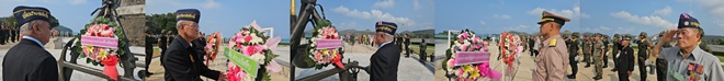 พลเรือโท เสมา สุวรรณโชติ ประธานชมรมทหารผ่านศึกสัตหีบ นาวาเอก กองมี ขุนแข็ง ประธานเครือข่ายทหารผ่านศึกอำเภอสัตหีบ นาวาเอก ทองปลิว นึกชัยภูมิ ตัวแทนทหารนักรบนิรนาม 333 นำทหารผ่านศึกจากสมรภูมิต่างๆ ร่วมในพิธี โดยมีพลเรือตรี อภิชาติ ทรัพย์ประเสริฐ รองผู้บัญชาการหน่วยบัญชาการนาวิกโยธิน นำคณะร่วมให้การต้อนรับ และร่วมในพิธีวางพวงมาลา รำลึกถึงวีรกรรม ความกล้าหาญ และความเสียสละของทหารผ่านศึกในวันนี้