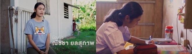 “หนูอยู่กับคุณยาย คุณยายเป็นคนเลี้ยงหนูมาตั้งแต่เด็ก ๆ เลย” น้องบัวเล่า “หนูเห็นคุณยายเป็นหนี้มาตั้งแต่เด็ก บางทีต้องคอยหลบเพราะว่าไม่มีเงินไปจ่าย หนูก็อยากให้คุณยายสบาย อยากเลี้ยงคุณยาย และก็อยากให้คุณยายอยู่กับหนูนาน ๆ …หนูเลยมีความฝันตั้งแต่เด็กว่าจะตั้งใจเรียนให้จบปริญญา เพราะตั้งใจว่าอยากให้ครอบครัวพัฒนามากขึ้น แล้วก็มีความเป็นอยู่ที่ดีขึ้น”