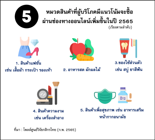 ศูนย์วิจัยกสิกรไทยคาดว่า ในปี 2565 ธุรกิจขนส่งสินค้าแบบควบคุมอุณหภูมิ ที่เน้นเจาะกลุ่ม B2C จะมีมูลค่าราว 2.9-3.0 พันล้านบาท คิดเป็นสัดส่วนราว 5% ของมูลค่าธุรกิจขนส่งสินค้าออนไลน์ (Last mile Delivery: B2C) ซึ่งจะเติบโตในกรอบ 15-20% (YoY) ชะลอจากปีก่อนหน้าที่คาดว่าจะขยายตัวราว 40-45% (YoY) ส่วนหนึ่งเป็นผลมาจากฐานสูงและปัจจัยเร่งชั่วคราวจากการล็อกดาวน์หมดไป ผู้คนบางส่วนสามารถกลับไปเดินทางและรับประทานอาหารนอกบ้านได้มากขึ้น อย่างไรก็ดี คาดว่าความต้องการของผู้บริโภคยังคงเพิ่มขึ้น สอดคล้องกับผลการสำรวจของศูนย์วิจัยกสิกรไทย ที่พบว่าผู้บริโภคที่เคยใช้บริการมาก่อนราว 42% มีแนวโน้มที่จะใช้บริการขนส่งควบคุมอุณหภูมิเพิ่มขึ้นกว่าเดิม เนื่องจากในช่วงที่ผ่านมา ผู้บริโภคเกิดการรับรู้ในวงกว้างและมีความเคยชินมากขึ้น นอกจากนี้ จากผลการสำรวจยังพบว่า ในปี 2565 ผู้บริโภคมีแนวโน้มที่จะเลือกซื้อสินค้ากลุ่มอาหารสด โดยเฉพาะอาหารทะเล ผักผลไม้ รวมไปถึงอาหารปรุงสำเร็จ อาหารแช่เย็นแช่แข็ง ผ่านช่องทางออนไลน์เพิ่มขึ้นเป็นอันดับที่สอง รองจากสินค้ากลุ่มแฟชั่น