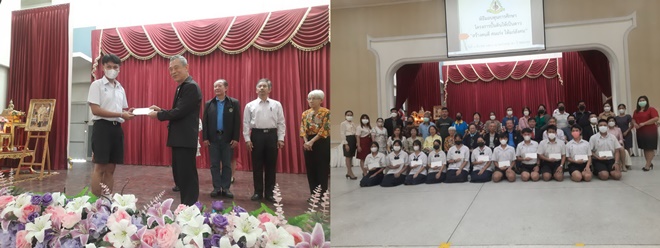 นายสุพัฒน์ ธนะพิงศ์พงษ์ , พร้อมด้วยคณะผู้ใหญ่ใจดีซึ่งประกอบด้วย นายโชคชัย บรรลุทางธรรม ประธานมูลนิธิสร้างคนดี คนเก่ง ของสังคมร่วมธรรมศาสตร์,นางสุนี ชัยเจนกิจ เหรัญญิกมูลนิธิการแพทย์เพื่อปวงประชา รวมทั้งผู้ใหญ่ใจดีจากกองทุนทำบุญวันเกิดมหาวิทยาลัยธรรมศาสตร์ เพื่อมามอบทุนการศึกษาประจำปีการศึกษา 2565 ให้กับเด็กนักเรียนในโครงการการปั้นดินให้เป็นดาว “สร้างคนดี คนเก่ง ให้กับสังคม“ จำนวน 15 ทุน ทุนละ 3,000 บาท โดยมีนักเรียนชั้นมัธยมศึกษาปีที่ 1 (ม.1 ) และชั้นปีที่ 4 (ม.4 ) เป็นการให้ทุนแบบต่อเนื่อง คือให้จนกว่าจะจบปีการศึกษา รวมทั้งสิ้น กว่า 460,000 บาท (สี่แสนหกหมื่นบาท)