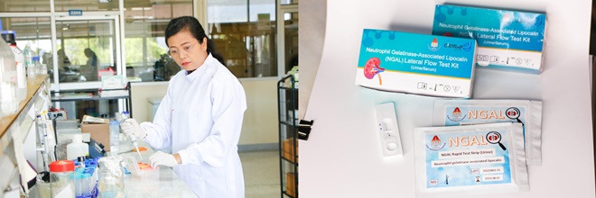 ทีมนักวิจัยมหาวิทยาลัยขอนแก่น นำโดย รศ.ดร.ทนพญ.จุรีรัตน์ ดาดวง ได้พัฒนา “แถบตรวจวัดโปรตีน NGAL (Neutrophil Gelatinase-associated Lipocalin) ในปัสสาวะ” เพื่อช่วยการตรวจคัดกรอง ความผิดปกติของท่อไตได้ตั้งแต่ในระยะเริ่มต้น ใช้ระยะเวลาทดสอบไม่เกิน 15 นาที ก็ทราบผลด้วยตาเปล่า สามารถตรวจวัดปริมาณโปรตีน NGAL ในปัสสาวะได้ในระดับนาโนกรัม และมีความแม่นยำในการตรวจวัดประมาณ 90% นับว่าเป็นแถบตรวจที่มีขนาดเล็ก ใช้ง่ายประชาชนทั่วไปก็สามารถเข้าถึงการตรวจคัดกรองโรคไตด้วยตนเอง โดยใช้ตัวอย่างปัสสาวะประมาณ 20 ไมโครลิตร หากผลตรวจขึ้น 2 ขีด จะเป็นข้อบ่งชี้ว่าผู้ป่วยควรเข้ารับการตรวจวินิจฉัยเกี่ยวกับไตและรักษาทางการแพทย์ต่อไป