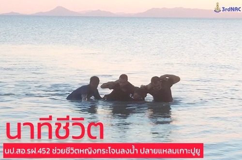 นาวาเอก เชษฐา คุ้มเจริญ ผู้ช่วยโฆษกทัพเรือภาคที่ 3 ได้รับมอบหมายจาก พลเรือโท สมพงษ์ นาคทอง ผู้บัญชาการทัพเรือภาคที่ 3 แจ้งให้ทราบว่าได้มีการช่วยเหลือผู้หญิงกระโจนลงน้ำจากโขดหินลงในทะเลที่บริเวณปลายแหลมเกาะปูยู จว.สตูล เมื่อเย็น วันที่ 7 มกราคม 2565 จากกำลังพลประจำสถานีตรวจการณ์ทางทะเล หน่วยปฏิบัติการ หน่วยบัญชาการต่อสู้อากาศยานและรักษาฝั่งที่ 452 กองทัพเรือ (นป.สอ.รฝ.452) ซึ่งได้รับแจ้งเหตุจากชาวบ้านในพื้นที่ ซึ่งขณะนั้นระดับน้ำที่จุดเกิดเหตุยังไม่ลึกมาก จึงสามารถนำผู้ประสบเหตุขึ้นจากน้ำ พร้อมนำกลับเข้าฝั่งและปฐมพยาบาลต่อไป ผู้หญิงดังกล่าวเป็นคนไทย (ขอสงวนนาม) อายุ 45 ปี อยู่ที่ ต.ปูยู อ.เมือง จว.สตูล พบสาเหตุเกิดจากความเครียดในปัญหาครอบครัว โดยภายหลังจากปฐมพยาบาลแล้ว เจ้าหน้าที่ทหารเรือได้พูดให้กำลังใจ และได้นำส่ง ร.พ.ส่งเสริมสุขภาพตำบลเกาะปูยู อย่างปลอดภัย