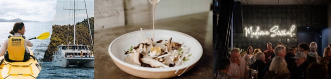 - กิจกรรม Kayak & Cruise โดยบริษัททัวร์ Marlborough ณ เขต Marlborough: กิจกรรมยอดฮิตสำหรับคู่รักกลับมาให้บริการอีกครั้งในฤดูนี้ เริ่มต้นวันด้วยการพายเรือคายัคพร้อมชมวิวอันเงียบสงบของ Queen Charlotte Sound และสัตว์ทะเลน่ารักๆ อย่างแมวน้ำและปลากระเบน จากนั้นผ่อนคลายยามบ่ายบนเรือ Catamaran พร้อมลิ้มรสอาหารทะเลสดๆ และไวน์ Marlborough ชั้นเลิศ ท่ามกลางวิวทิวทัศน์อันงดงาม