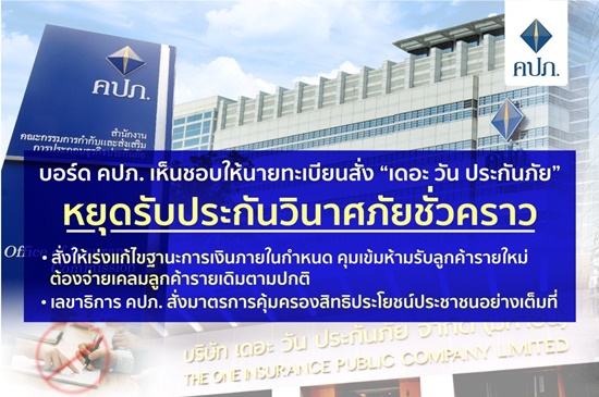 ให้นายทะเบียนสั่ง“เดอะ วัน ประกันภัย”หยุดรับประกันชั่วคราว