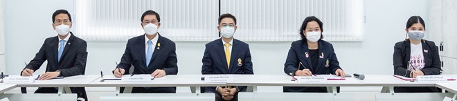 นายพงศธร ทวีสิน ประธานเจ้าหน้าที่บริหาร บริษัท ปตท.สำรวจและผลิตปิโตรเลียม จำกัด (มหาชน) และ ดร.ธนา สราญเวทย์พันธุ์ ผู้จัดการทั่วไป บริษัท เอไอ แอนด์ โรโบติกส์ เวนเจอร์ส จำกัด ได้ร่วมลงนามในบันทึกข้อตกลงการสนับสนุนงบประมาณ 30 ล้านบาท เพื่อพัฒนาวัคซีนโควิด-19 ชนิดโปรตีนซับยูนิตจากใบยาสูบ “จุฬาฯ-ใบยา” กับ รศ.ดร.ณัฐชา ทวีแสงสกุลไทย ประธานมูลนิธิ ซียูเอ็นเทอร์ไพรส์ และ ผศ.ภญ.ดร.สุธีรา เตชคุณวุฒิ ประธานเจ้าหน้าที่บริหารและผู้ร่วมก่อตั้ง บริษัท ใบยา ไฟโตฟาร์ม จำกัด โดยมี ศ.ดร.บัณฑิต เอื้ออาภรณ์ อธิการบดีจุฬาลงกรณ์มหาวิทยาลัย ร่วมเป็นสักขีพยาน ณ โรงงานต้นแบบการผลิตวัคซีนและยาชีววัตถุด้วยพืช ซึ่งดำเนินการโดยจุฬาลงกรณ์มหาวิทยาลัย และบริษัท ใบยา ไฟโตฟาร์ม จำกัด