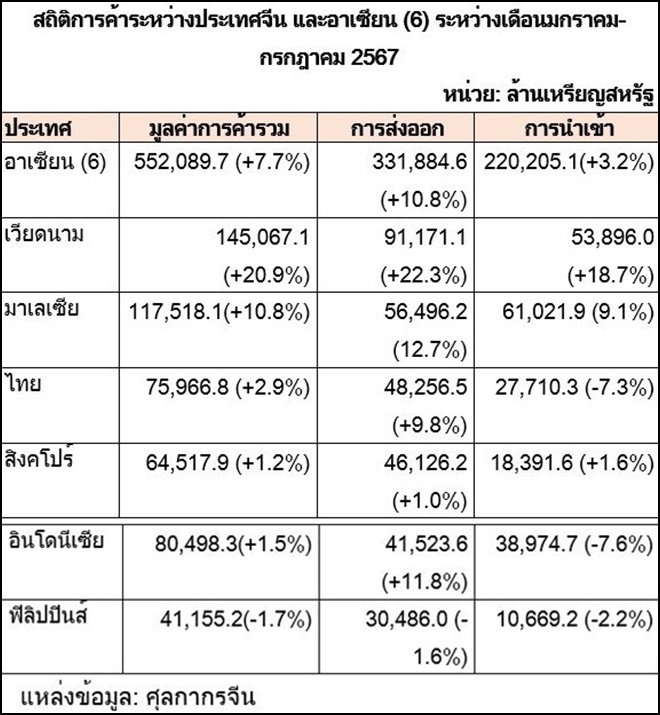 การลงทุนของจีนในประเทศไทยและประเทศสมาชิกอาเซียนอื่น ๆ โดยเฉพาะในภาคพลังงาน การผลิตและการเกษตร สามารถนําเงินทุนและเทคโนโลยีมาสนับสนุนการเติบโตและการพัฒนาที่ยั่งยืนของเศรษฐกิจท้องถิ่น จะมีบทบาทเชิงบวกในความเจริญรุ่งเรืองทางเศรษฐกิจและการค้าในภูมิภาคและการยกระดับอุตสาหกรรม ภายใต้โอกาสและเงื่อนไขที่เอื้ออํานวยต่าง ๆ เป็นที่คาดการณ์ได้ว่าความร่วมมือระหว่างไทยและจีนในหลายด้าน เช่น การแลกเปลี่ยนทางธุรกิจและการค้า การลงทุน การก่อสร้างนิคมอุตสาหกรรม การท่องเที่ยว พลังงานใหม่ เทคโนโลยีชั้นสูง อีคอมเมิร์ซข้ามพรมแดน ฯลฯ มีศักยภาพและโอกาสที่สดใสไม่จํากัด และการค้าระหว่างไทยและจีนสามารถส่งเสริมการกระจายเศรษฐกิจและการขยายตลาดของประเทศในอาเซียน มีส่วนร่วมในการพัฒนาเศรษฐกิจอาเซียนอย่างยั่งยืน