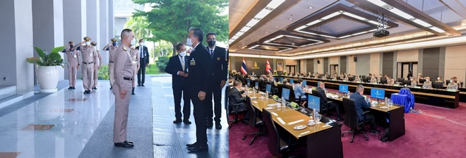 พลเรือเอก เชิงชาย ชมเชิงแพทย์ ผู้บัญชาการทหารเรือ/รอง ผอ.ศูนย์อำนวยการรักษาผลประโยชน์ของชาติทางทะเล (ศรชล.) ให้การต้อนรับ พลเอก บุญสร้าง เนียมประดิษฐ์ ประธานคณะกรรมาธิการทหารและความมั่นคงของรัฐ วุฒิสภาและคณะ ในโอกาสที่มาศึกษาดูงาน และรับฟังการบรรยายสรุปจาก กองทัพเรือ ณ กองบัญชาการกองทัพเรือ พื้นที่วังนันทอุทยานเขตบางกอกน้อย กรุงเทพมหานคร