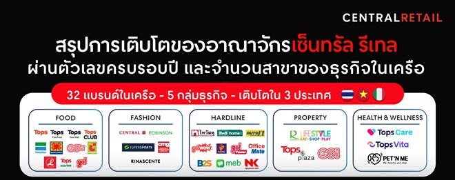 - ท็อปส์ 26 ปี: ผู้นำธุรกิจอันดับหนึ่งด้านซูเปอร์มาร์เก็ตระดับพรีเมียม ภายใต้แบรนด์ Tops, Tops Food Hall, Tops Fine Food และ Tops Club ปัจจุบันมีทั้งหมด 293 สาขา