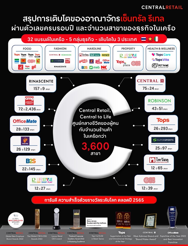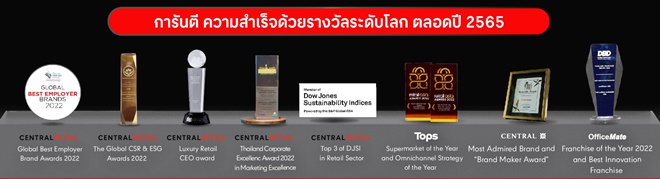 - กลุ่มธุรกิจในเครือเซ็นทรัล รีเทล คว้า 23 รางวัล เป็นกำลังสำคัญในการสร้างการเติบโต อาทิ
