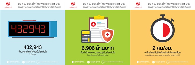 ชวนให้จินตนาการถึงเสียงเข็มวินาทีของนาฬิกา บอกถึงการนับถอยหลังถึงภัยของโรคหัวใจที่คร่าชีวิตคนไทยไปอย่างอย่างช้าๆ ซึ่งเป็นหนึ่งในสาเหตุของการเสียชีวิตสูงถึงอันดับ 3 ของไทยเลยทีเดียว ซึ่งโรคหัวใจที่พบบ่อยและเป็นสาเหตุของการเสียชีวิตเยอะที่สุดทั่วโลกคือ โรคหลอดเลือดหัวใจตีบหรืออุดตัน ซึ่งพบได้มากในผู้สูงอายุ ตามมาด้วยโรคลิ้นหัวใจ โรคหัวใจพิการแต่กำเนิด และโรคกล้ามเนื้อหัวใจ ที่น่าตกใจคือ พบว่าปัจจุบันมีสถิติพบคนที่อายุยังน้อยหรือวัยรุ่นมีความเสี่ยงเป็นโรคหัวใจได้มากด้วยเช่นกัน