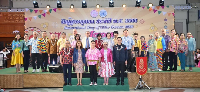 นายวราวุธ ศิลปอาชา รัฐมนตรีว่าการกระทรวงการพัฒนาสังคมและความมั่นคงของมนุษย์ (รมว.พม.) เป็นประธานในพิธีเปิดงานมหกรรมวันผู้สูงอายุสากล ประจำปี พ.ศ. 2566 (International Day of Older Persons 2023) ภายใต้แนวคิด “ชาญชาลา : คนต่างวัย หัวใจเดียวกัน Across Generations” โดยมี นายอนุกูล ปีดแก้ว ปลัดกระทรวงการพัฒนาสังคมและความมั่นคงของมนุษย์ นางสาวแรมรุ้ง วรวัธ อธิบดีกรมกิจการผู้สูงอายุ นายนิรุฒ มณีพันธ์ ผู้ว่าการรถไฟแห่งประเทศไทย นายแพทย์วิชัย โชควิวัฒน Ms. Gita Sabharwal UN Resident Coordinator คณะผู้บริหารกระทรวง พม. และผู้แทนหน่วยงานที่เกี่ยวข้อง เข้าร่วมงาน ณ สถานีรถไฟกรุงเทพฯ (หัวลำโพง)