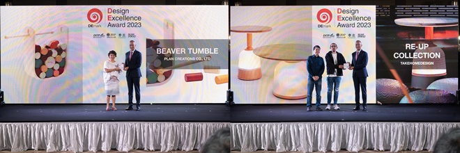 โดยผลการดำเนินงาน ตั้งแต่ปี 2551 มีสินค้าจากทั่วประเทศที่ได้รับรางวัล DEmark แล้วจำนวนทั้งสิ้น 1,159 รายการ ได้รับรางวัล Good Design Award (G-mark) จากประเทศญี่ปุ่นแล้ว 531 รายการ นอกจากนี้ ผลงานการออกแบบที่ได้รับคะแนนสูงสุดในแต่ละสาขาในปีนี้ จะได้รับรางวัลผู้ประกอบธุรกิจส่งออกดีเด่น ปี 2566 (Prime Minister’s Export Award 2023) ประเภทรางวัลสินค้าไทยที่มีการออกแบบยอดเยี่ยม (Best Design) จากนายกรัฐมนตรี ได้แก่