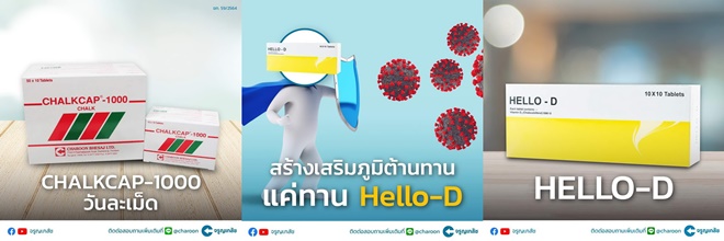 บริษัท จรูญเภสัช จำกัด เป็นผู้นำในด้านแคลเซียมและวิตามิน ดี 3ไม่ว่าจะ “CHALKCAP” แคลเซียมเจ้าแรกในประเทศไทยและเป็นแคลเซียมที่คุณหมอจ่ายจริงในโรงพยาบาล ที่ช่วยสร้างกระดูกและลดการสูญเสียมวลกระดูก หรือจะเป็น “HELLO – D” วิตามินดี 3 ช่วยเพิ่มการดูดซึมแคลเซียมและเพิ่มภูมิต้านทาน ลดโอกาสติดเชื้อโควิด-19