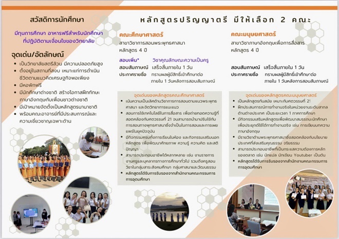 คณะศึกษาศาสตร์ สาขาวิชาการสอนพระพุทธศาสนา หลักสูตร 4 ปี (สอบเพิ่มวิชาคุณลักษณะความเป็นครู) เน้นความเป็นเลิศด้านวิชาการสอนตามแนวพระพุทธศาสนาและจิตวิทยาการแนะแนว โดยใช้เทคโนโลยีเป็นสื่อการสอน ถ่ายทอดความรู้ที่สอดคล้องกับศตวรรษที่ 21 เพื่อสามารถนำมาปรับใช้กับการสอนทางพระพุทธศาสนา ซึ่งจำเป็นในการสอนและการเผยแพร่ยุคปัจจุบัน ได้รับการรับรองจากสำนักงานคณะกรรมการการอุดมศึกษา