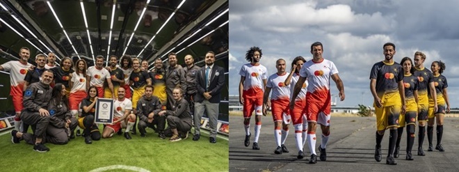 เกมเหนือโลกระหว่างสองทีมที่มีผู้เล่นทีมละสี่คนเกิดขึ้นเมื่อวันที่ 20 สิงหาคม 2565 โดยดาวเตะระดับตำนาน หลุยส์ ฟิโก้ ขึ้นเครื่องบินไปพร้อมกับนักเตะอีกเจ็ดคนที่ได้รับการคัดเลือกให้ร่วมเป็นส่วนหนึ่งของเที่ยวบินประวัติศาสตร์ การแข่งขันเกิดขึ้นต่อหน้าผู้ตัดสินอย่างเป็นทางการจากกินเนสส์ เวิลด์ เรคคอร์ด และสักขีพยานอีกสองคน ในขณะที่ฟิโก้เลี้ยงบอลผ่านสนามฟุตบอลขนาด 75 ตารางเมตรในเครื่องบินอย่างคล่องแคล่ว