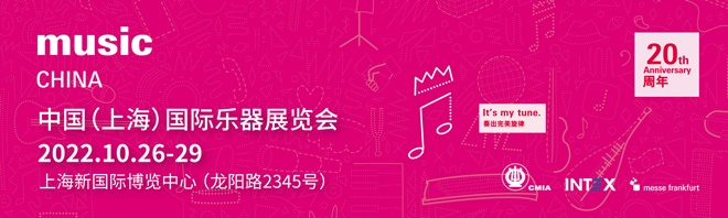 มิวสิค ไชน่า (Music China) ซึ่งร่วมจัดขึ้นโดยซีเอ็มไอเอ (CMIA), เซี่ยงไฮ้ อินเทกซ์ (Shanghai INTEX) และเมสเซ่ แฟรงก์เฟิร์ต (Messe Frankfurt) เตรียมกลับมาเปิดฉากอีกครั้ง ณ นครเซี่ยงไฮ้ ประเทศจีน วันที่ 26-29 ตุลาคม 2565 ในวาระครบรอบ 20 ปี มหกรรมมิวสิค ไชน่า 2022 จะไม่เพียงแต่สร้างความตะลึงด้วยสินค้าที่ล้ำสมัย แต่ยังมีอีเวนท์มากมายเพื่อฉลองการครบรอบครั้งนี้ด้วย