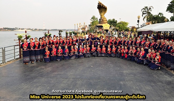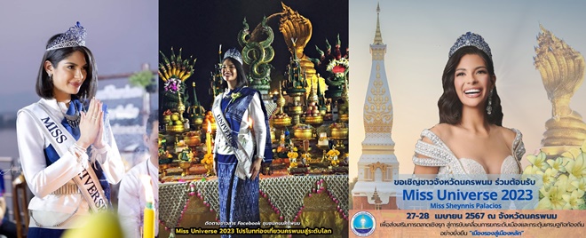 ณ อาคารศรีโคตรบูรณ์ วิทยาลัยการท่องเที่ยวและอุตสาหกรรมบริการ มหาวิทยาลัยนครพนม ดร. มนพร เจริญศรี รัฐมนตรีช่วยว่าการกระทรวงคมนาคม  พร้อมด้วย นายวันชัย จันทร์พร ผวจ.นครพนม นายอนุชิต หงษาดี นายก อบต.โพนสวรรค์ แกนนำครอบครัวเพื่อไทย ร่วมกับเจ้าหน้าที่เกี่ยวข้อง และตัวแทนภาครัฐ เอกชน และตัวแทนภาคประชาชน ให้การต้อนรับ Miss Sheynnis Palacios Miss Universe 2023 รวมถึง แอน จักรพงษ์ และคณะ ในฐานะผู้ดูแล มิส ยูนิเวิร์ส  ที่เดินทางมาร่วม สนับสนุนส่งเสริมการท่องเที่ยว และประชาสัมพันธ์ ผลิตภัณฑ์ ผลงานอาชีพภูมิปัญญาชาวบ้าน ซอฟต์พาวเวอร์ ในครั้งนี้ มีโอกาส สัการะบูชา ขอพรองค์พระธาตุพนม ที่วัดพระธาตุพนมวรมหาวิหาร อ.ธาตุพนม จ.นครพนม รวมถึง ขอพรพระธาตุศักดิ์สิทธิ์ และเที่ยวชมสถานที่สำคัญของจังหวัด นอกจากนี้ ยังได้ร่วมประชาสัมพันธ์ ชมผลงานสินค้าโอท็อป ภูมิปัญญาชาวบ้าน  พร้อมส่งเสริม ด้านการตลาด สู่เวทีโลก ที่จะเป็นการกระตุ้นเศรษฐกิจ การค้า การท่องเที่ยว และเพิ่มมูลค่าผลิตภัณฑ์ ซอฟต์พาวเวอร์ ของชุมชน