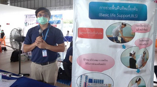 ทางด้าน นายชาญณรงค์ ประสารกก พยาบาลวิชาชีพชำนาญการ ศูนย์หัวใจสิริกิติ์ภาคตะวันออกเฉียงเหนือ คณะแพทยศาสตร์ มหาวิทยาลัยขอนแก่น บุคลากรที่มาให้บริการประชาชนในวันนี้ เปิดเผยว่า วันนี้ศูนย์หัวใจสิริกิติ์ นำทีม CPR ของทางศูนย์หัวใจฯมาให้ความรู้ประชาชน เพราะการ CPR เป็นสิ่งที่ทำได้ง่าย แต่ช่วยชีวิตคนได้สูงมาก ทั้งนี้ การ CPR สามารถทำให้ผู้เรียนรู้กลายเป็นฮีโร่ได้ เพราะการใช้แค่มือสองข้างแต่ทำได้ถูกต้อง ก็สามารถทำให้ผู้เรียนรู้ช่วยชีวิตคนได้ ฉะนั้นวันนี้ทีมของเราจึงนำหุ่นที่ใช้ในการสอนประชาชน และอุปกรณ์คอร์สในการอบรมของพวกเรามาทั้งหมด ซึ่งการที่เราออกมาสอนนอกสถานที่นี้จะช่วยให้ประชาชนที่ไม่มีโอกาสในการเข้าไปเรียนรู้ที่ศูนย์ฯได้รับการเทรนง่ายขึ้น มีผู้มาเรียนรู้หลากหลายมากขึ้น โดยในวันนี้สอนประชาชนตั้งแต่นักเรียนชั้นม.1 จนถึงอายุประมาณ 70 ปี ทำให้เรามีการกระจายองค์ความรู้ด้านนี้ออกไปในสังคมได้มากขึ้น สามารถเพิ่มฮีโร่ในการช่วยเหลือคนได้อีกหลายคน