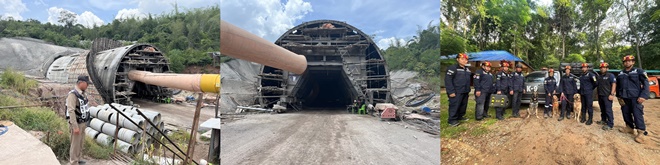 นายสุรพงษ์ กล่าวเพิ่มเติมว่า  สำหรับการกู้ภัย ปัจจุบันได้ดำเนินการดันท่อเหล็กขนาดเส้นผ่านศูนย์กลาง 1.20 เมตร ยาวท่อนละ 6 เมตรเข้าไปแล้ว 2 ท่อนและอยู่ระหว่างดำเนินการท่อที่สาม จะได้ความยาว 18 เมตร ซึ่งปัจจุบันอยู่ระหว่างรอเครื่องจักรกลที่มีประสิทธิภาพสูงมาดันท่อเหล็กดังกล่าวเพิ่ม  และดำเนินการดันท่อขนาดเล็กที่มีอุปกรณ์ตรวจจับตำแหน่ง เพื่อค้นหาตำแหน่งผู้ที่ติดค้างภายในอุโมงค์ โดยคาดว่าจะดำเนินการครบ 5-6 ท่อนภายในคืนนี้ ไม่เกินพรุ่งนี้เช้า เพื่อเพิ่มอากาศในอุโมงค์ พร้อมทั้งช่วยเหลือและค้นหาผู้ที่ติดอยู่ภายในอุโมงค์ ควบคู่กับการใช้เครื่องตรวจวัดสัญญาณชีพ และสุนัข K-9 ช่วยค้นหาผู้ประสบภัย