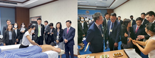 โอกาสเดียวกันนี้ รมว.แรงงาน ยังได้นำ ประธานสภาองค์การนายจ้างฮ่องกง และคณะ เยี่ยมชมการฝึกอบรมหลักสูตรการยกระดับฝีมือแรงงาน สาขาการประกอบอาหารไทย อาหารจานเดียว และสาขานวดหินร้อน ระยะเวลาการฝึกหลักสูตร 30 ชั่วโมง ที่วิทยาลัยการแรงงาน กระทรวงแรงงาน โดยกรมพัฒนาฝีมือแรงงาน มีความพร้อมและมีศักยภาพทั้งหลักสูตร เครื่องมือ รวมทั้งมีศูนย์ฝึกเป็นสถานที่รองรับการฝึกอบรมทักษะฝีมือ up skill/re skill และพัฒนาทักษะด้านภาษา ตลอดจนมีสถานทดสอบมาตรฐานฝีมือในสาขาต่าง ๆ ตามความต้องการของนายจ้างอีกด้วย