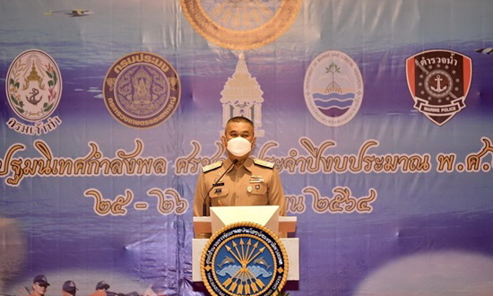 ที่ห้องประชุมนภาลัย โรงแรมดุสิตธานี พัทยา จ.ชลบุรี พล.ร.อ.สมประสงค์ นิลสมัย ผู้บัญชาการทหารเรือ (ผบ.ทร.)ในฐานะรองผู้อำนวยการศูนย์อำนวยการรักษาผลประโยชน์ของชาติทางทะเล (รอง ผอ.ศรชล.) เป็นประธานในพิธี เปิดการอบรมปฐมนิเทศกำลังพล ศูนย์อำนวยการรักษาผลประโยชน์ของชาติทางทะเล (ศรชล.) ประจำปีงบประมาณ 2565 ระหว่างวันที่ 25-26 พ.ย.64 โดยมี นายภัครธรณ์ เทียนชัย ผู้ว่าราชการจังหวัดชลบุรี ในฐานะ ผอ.ศรชล.จังหวัดชลบุรี ร่วมในพิธีด้วย