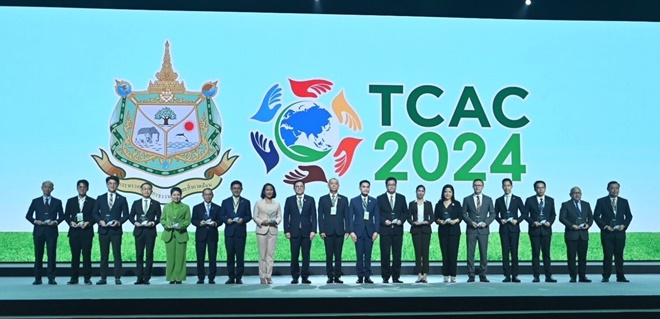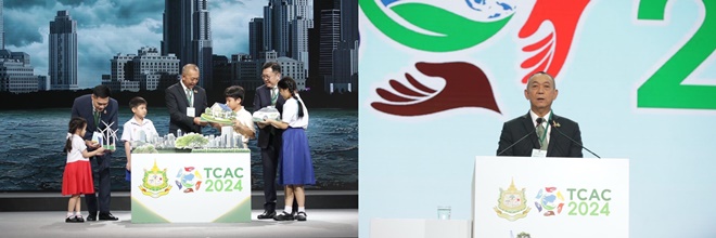 ดร.เฉลิมชัยกล่าวต่อไปว่า “ในการประชุม TCAC 2024 ครั้งนี้ แสดงให้เห็นถึงทิศทางและเป้าหมายการลดก๊าซเรือนกระจกที่มีความเข้มข้นมากยิ่งขึ้น อีกทั้งการเตรียมการตั้งรับ ปรับตัว การสร้างเสริมภูมิคุ้มกันต่อการเปลี่ยนแปลงสภาพภูมิอากาศตั้งแต่ระดับนโยบาย สู่การปฏิบัติในระดับพื้นที่ การยกระดับการเตือนภัยพิบัติในพื้นที่เสี่ยง รวมไปถึงการประยุกต์ใช้เทคโนโลยีและนวัตกรรมใหม่ ๆ ที่เป็นมิตรต่อภูมิอากาศ อีกทั้งยังเป็นเวทีสะท้อนให้กับเครือข่ายประชาสังคม และเยาวชน รวมถึงมีการแสดงนิทรรศการให้ความรู้ ทั้งการดำเนินนโยบายของรัฐ เทคโนโลยี และงานวิจัย เพื่อรับมือกับการเปลี่ยนแปลงสภาพภูมิอากาศ กลไกการเงิน โครงการความร่วมมือทวิภาคีและพหุภาคี และที่สำคัญนิทรรศการโครงการเฉลิมพระเกียรติพระบาทสมเด็จพระเจ้าอยู่หัว เนื่องในโอกาสมหามงคลเฉลิมพระชนมพรรษา 6 รอบ 72 พรรษา