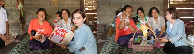 ในครั้งนี้ได้มอบกล่องของขวัญ ให้กับ กับ นางสาวราตรี พิมสลัด อายุ 36 ปี แม่น้องกีตาร์ ดู.ญ. รดา พระสุริยะทุง อายุ 7 วัน ชาวบ้านดอนสวรรค์ ต.นาขมิ้น อ.โพนสวรรค์ จ.นครพนม พร้อมแสดงความ ยินดีกับครอบครัว ที่ได้สมาชิกใหม่ เป็นกำลังใจให้ดูแลลูกหลานเยาว มีอนาคตที่ดี